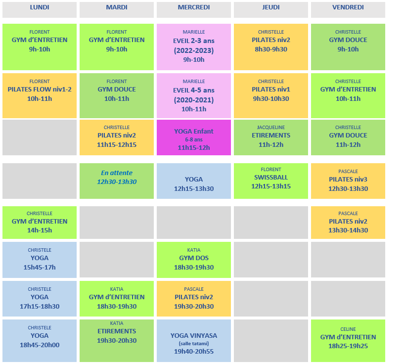 Les cours de l’ AGYD sont dispensés dans la salle GYM et YOGA niveau intermédiaire de l’Espace Laurent Bonnevay, place de l’Abbé Maurice Feyeux à Saint-Didier- ...